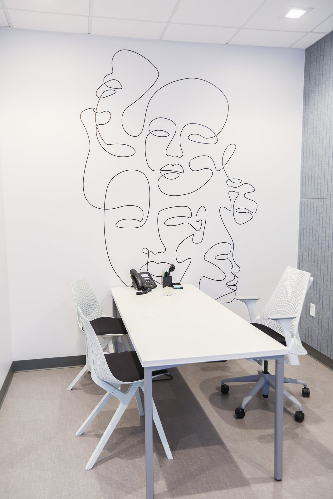Materials played a crucial role in bringing this vision to life. Armstrong Vinyl flooring and ceiling materials provided a durable and stylish foundation, while acoustic paneling and signage from 3Form ensured a serene and organized environment. Office furniture from Herman Miller and decorative lighting from Gexpro added comfort and elegance. Decorative paneling by Mario Romano and wallpaper from Photowall contributed to the studios' distinctive look, and reception seating from Stylex ensured a welcoming atmosphere. Handling the full creative scope of this project was a fun and incredible experience for Peggy, resulting in a series of orthodontic studios that are both beautiful and highly functional.
